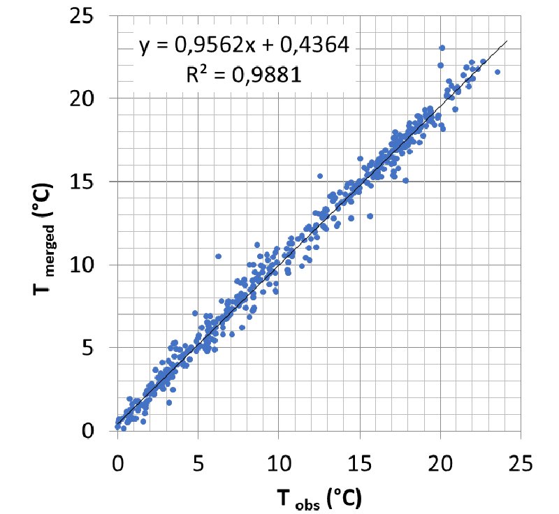 Dokładność prezentowanych map temperatury oszacowana jest na podstawie analizy różnic pomiędzy wartościami temperatury zmierzonymi in situ a wartościami uzyskanymi w wyniku łączenia wyznaczonych zdalnie i za pomocą modeli hydrodynamicznych. Błąd statystyczny, wyrażony jako odchylenie standardowe tych różnic, oszacowano na 0,73°C. Błąd systematyczny (średnia różnica) wynosi -0,03 °C.